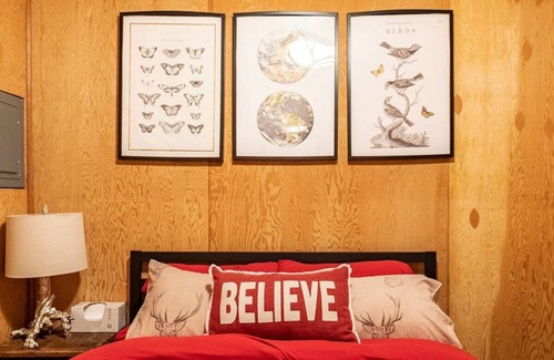 Quiet location, small rustic cabin. We have 2 bedrooms and sleeping loft. One bedroom has queen bed, another bunk bed, sleeping loft has single bed.