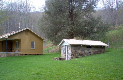 Cozy cottage in a cove farm setting. Historic 1800's original with 2017 conveniences on 300 acres of privacy with only the main farm house and red barn in view. Relax on porches with sounds of creeks on both sides.Spring water and mountain fresh air. Hot tub on side deck to finish the day. Historic cottage built from 2 mountain schoolhouses brought to this site in 1935, always occupied, remodeled in 2007. Two bedrooms/two bathrooms, full kitchen, separate dining room, large living room. Fully furnished. Master has king bed. Easy access to I-40 for day trips or Hwy 209 for town trips. 30 Min to Asheville Artist Riverwalk, 10 Min to Main St Waynesville, 45 Min to Cherokee Casino. Paved to gate, gravel driveway. Last "vacationer" stayed almost 2 years. Available immediately.