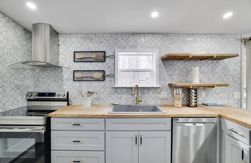 • Kitchen appliances such as Keurig, kettle, blender, toaster, and coffee machine (coffee not included)