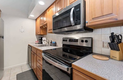 * Recently renovated second-floor one-bedroom condo with a full bath and fully-equipped kitchen open to the living space, perfect for a small family, couples, or solo travelers.