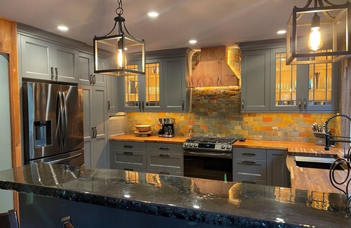 2nd floor - Enjoy cooking? Our remodeled kitchen with oversized window is the perfect place for cooking up a homecooked meal! All new Samsung appliances. Off the kitchen is a dining area that seats 8. There is also a custom concreate countertop in the kitchen with 3 barstools.