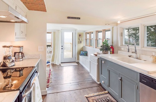 The house is a sanctuary with soothing colors, eclectic artwork, and comfortable niches beginning on the front porch and continuing throughout the house. You will find three bedrooms, two full baths, a great galley kitchen and dining area with a killer view.
