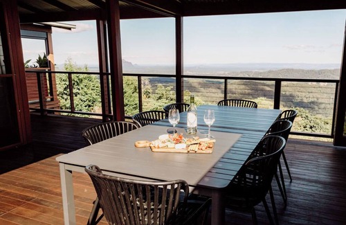 "Mountain View House & Studio" is perched on the ridge overlooking the spectacular Glasshouse Mountains.