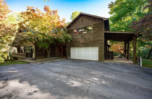 When you enter the lodge you are welcomed with an open concept that starts with the coat/mud room and then opens up to a spacious living area accented with an oversized stone fireplace. The living room and sunroom have floor to ceiling windows with magnificent views of Yonah, Sal, and Pink Mountains. Dining areas spread out all over the main level offering a formal dining room for those special events or just hang out in the eat in areas surrounging the living room for that cozy at home feeling. The bedrooms are sectioned off from each other to give added privacy. Bunk room has large sleeping space for bookings that need extra sleeping space for larger guest groups. The billiard room offers a spacious area for some fun entertainment. Amazing covered patio with beautiful Mountian Views with lots of seating for guest to relax and enjoy a quiet lazy day, special events, or even rainy days are enjoyable, back patio offers a pleasant area to enteratin at night as well with amazing sunsets and sunrises. Hot tub available for guest to also enjoy. Unlike many other cabins and local venues we have tons of private parking for your stay.
