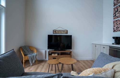 - Smart TV, high-speed Wi-Fi, books, and cozy seating