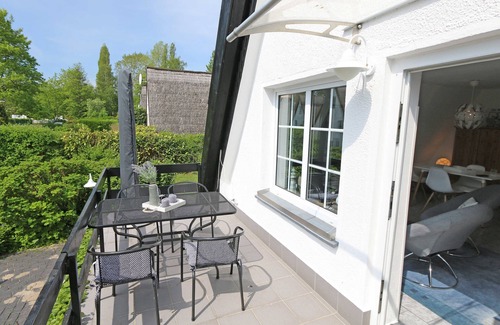 The thatched non-smoking holiday home comprises approx. 50 square meters of living space and extends over 2 floors. The house can accommodate 2 to 4 people. The ground floor is divided into an open living area with a couch, coffee table and 2 armchairs, a dining area for 4 people. The modern facilities are complemented by a flat-screen TV with sound bar and Blu-Ray player, a mini-compact system and for cozy evenings by various books and board games. An Internet connection (WLAN) is also included for you. Adjacent is the well-equipped kitchenette with a 4-zone ceramic hob, dishwasher, fridge freezer, microwave, coffee maker, kettle, toaster and many other kitchen utensils. As throughout the cottage area no open flame is allowed, we provide you with an electric grill. The bathroom, which is also located on the ground floor, is equipped with an open shower, a hair dryer, a vanity and a toilet. From the living area you reach the south-facing and furnished terrace with beach chair and umbrella. The associated garden covers about 450 m². The terrace has two stages created where the lower part of the terrace is not visible through a rear fouling and thus invites you to linger into the evening hours. Through a steep staircase which / dining area is located in the home, you get to the upper floor of the house. Here are 2 separate bedrooms, each with separate beds (3 beds each to 2.00 m x 0.90 m and 1 bed to 1.90 m x 0.90 m). From 2020, the single beds will be replaced by a double bed (1.60 mx 2.00 m). For smaller children there is a bed guard provided as fall protection. The premises have highboards and bedside tables. The located upstairs windows are fitted with insect screens and interior blinds. Even the kitchens and bathroom windows are equipped with insect screens. Pets are not allowed. A clothes horse and a bike rack are available for you. A parking space is located on the grounds of the complex and a playground. For our little guests are 1x travel cot (without extra mattress and without Bettinlett) and 1x high chair included. The initial equipment of a linen package (complete bed linen, 1 towel, 2 small towels) you can book up to 14 days before arrival for 16.00 € per person or supplement by your own. For packages booked for 2 or more you will receive 1 dish towel and 1 shower mat once.