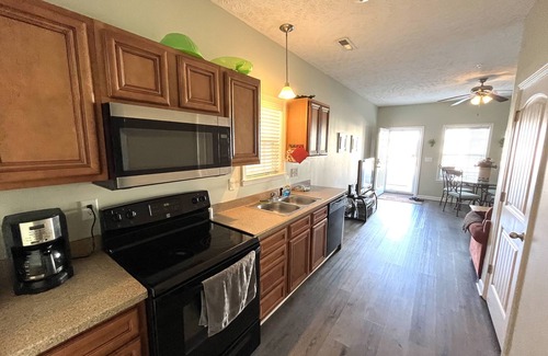 Entry from the covered front porch is a breeze with keyless entry. Warm vinyl plank flooring greets with a cozy sectional sofa with a queen-sized sleeper sofa, a coffee table with 4 slide-out ottomans and a large slat screen TV with Roku. The first floor level offers a laundry area with a washer and dryer. Both of the bathrooms in this unit feature a warming electric bidet toilet a seat, a full-bathroom with a shower is on the first level.