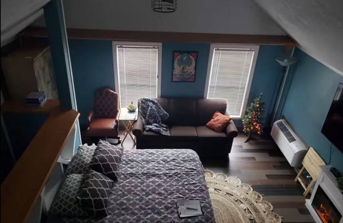 Welcome to our cozy and inviting loft apartment, perfectly situated near the heart of downtown Muskegon. Located in a historic two-unit home built in 1920, this upper-level studio offers a nostalgic ambiance with vintage Muskegon photography and a stunning view of Muskegon Lake. Whether you're here for a weekend getaway or an extended stay, this is the perfect base for exploring all that Muskegon has to offer.
