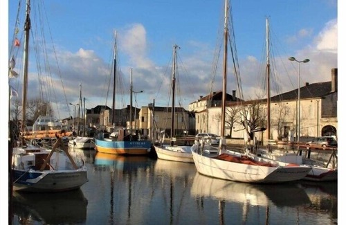 Walks or bike rides on the paths bordering the oyster beds, among the birds, fallow deer. We will show you our favorite trails. The beaches of Ronce Les Bains are 20 minutes by bike and are accessible by bike paths. At 300 m, observe the old sailing boats used for oyster farming. These old sailboats often go out to sea in summer and will necessarily pass through the channel in front of your house. Everything is accessible on one level. Possibility of adding a child bed for 50 €. Dining room 27 m² with sofa bed 2 places, kitchen (sink, fridge, stove, microwave, washing machine). 22 m² room with 140 cm bed + wardrobe and dresser. Shower room (shower and sink) and wc.
