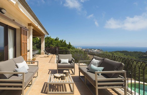 Villa Bridgitte is a 6 bedrooms property, charming decorated, with a beautiful sea view on the Mediterranean sea and protect by palma trees and pure nature, here you’ll find all the comforts for an unforgettable holiday in Mallorca, it’s located in the area of Gènova, just 5 minutes drive from Palma city, golf courses and all the services.