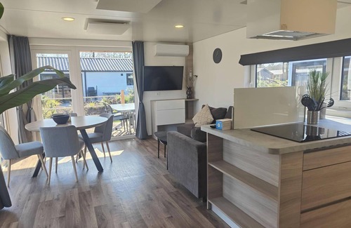 The Domus 4 is a detached and luxurious chalet for 4 people. The ground-floor chalet has a cosy sitting area with television, spacious dining area and the kitchen is fully equipped including a dishwasher, induction hob and Nespresso coffee maker. There are 2 bedrooms, both with two single beds. The spacious garden has a terrace with garden furniture. 1 car can be parked in the vicinity of the chalet and you can use the free Wi-Fi.