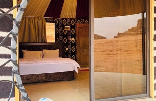 Nestled in Wadi Rum , this delightful lodge is a peaceful retreat for guests seeking a fantastic getaway. The cozy bedroom features a comfortable king bed, perfect for a restful night's sleep. With amenities like AC, heating, and WiFi, guests will feel right at home. The bathroom is equipped with a hair dryer for added convenience. Come experience the welcoming atmosphere of this lodge - we look forward to hosting you at our place.