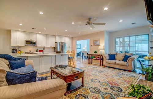 Up to 10 guests will feel right at home in this beautifully renovated single story, 4 bed, 2.5 bath smart home which features hickory hardwood floors, Rinnai gas tankless hot water heater, high speed WIFI internet, a NEST thermostat, Google mesh smart router, updated recessed can lighting and plenty of windows with blinds throughout. Guests can access home by self-check-in with digital combination code at front door.