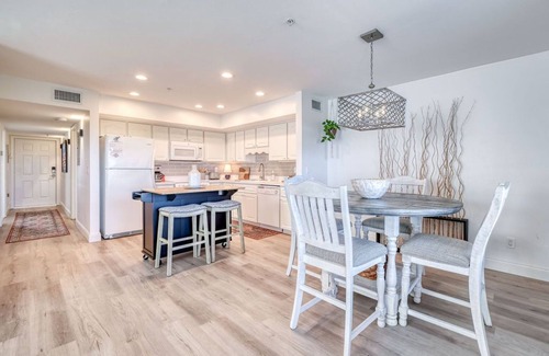 Welcome to Stargazer—a luxurious condo with a spectacular view! Step inside where designer looks and total comfort meet in perfect harmony. The living room features a large flat screen tv, ideal movie seating, and window blinds in case your binge watching continues by day! A fully stocked kitchen awaits the cook in your family, perfect for preparing easy summer meals or the holiday smorgasbord you prepare every year. Plenty of glassware, dishes, silverware, pots and pans, a blender, and the ever useful wine opener! The light and breezy master bedroom is the heart of this home away from home, providing a comfortable haven after your day on the island. A spa-like ensuite bathroom is yours alone, with a stocked linen closet and special amenities for your use. Across the hall is the entry to the second bathroom, which could serve as guest bath or private to the second bedroom. Separate water closet and shower allows multiple people to get ready at the same time. The second bedroom is accessed there also, with two comfortable twin beds. Quality linens and pillows in both bedrooms ensure you will have a great night's rest! This getaway offers vinyl plank flooring throughout, keeping everything seamless and easy to clean. A full size washer and dryer are here for your use and starter detergent is provided. If you are looking to relax and refresh, the balcony of Stargazer is the ideal location. Situated just above the mangroves and watery estuary, it is nature's window to a private show of birds, including egrets, herons, eagles, osprey, pelicans, and roseate spoonbills. The ever changing light on the marsh grasses is something to behold, like a painting that is always unique every time you look at it. You'll never tire of the peace and tranquility here. Stargazer has elevator access so no stairs are required! Bellman's carts are available next to the elevator to ensure you can come and go with ease.