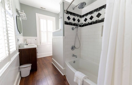 The Navigator Room is located on the second floor and receives beautiful natural light throughout the day. It features a queen-size bed and comfortable chairs for reading. The private en suite bathroom has a subway tile rain head shower and extra deep tub.