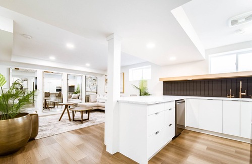 This elegant and fully renovated guest suite is 1000 sqft and has everything you need for a pleasant experience. You will have 2 bedrooms with a King-size bed in the primary and a Queen-size bed in the second bedroom. This suite would comfortably accommodate a group of 4.