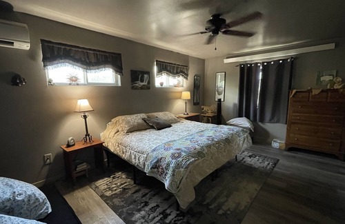 This unique place has a style all its own. Located above “Gallery on Main” you will have use of a covered deck & smoker grill. Newbuild added in 2019 with an open concept living area, oversized bedroom with a king size bed & futon. Large bathroom with walk in shower, soaker tub & laundry facilities. Living area with private outside entrance & small deck to enjoy the view of the Big Horn Mountains. Many outdoor activities close by… fishing, hiking, kayaking, skiing… biking and right on the path to Yellowstone. We are located 20 minutes from Sheridan Wyoming.... USA #1 Western town.