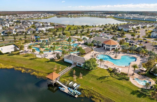 This Luxury 1500sqft Condo is less than 3 miles from Disney and includes access to TWO Resort Clubhouses (Hideaway and Branson) for maximum family fun and water play including pools, jacuzzies, lazy rivers, splash pad, water slides, playground, mini-golf, kayaks, and more!