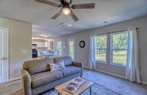 Discover the lively and historic downtown Anderson at this 4-bedroom, 2.5-bathroom vacation rental nestled in the foothills of the Blue Ridge Mountains. This newly built home features modern amenities, new furnishings, and a large backyard complete with picturesque wooded views. Whether you're visiting to cheer on the Tigers at Memorial Stadium, explore the botanical gardens, golf, or try your luck at bass fishing on Lake Hartwell, you're sure to have an enjoyable stay filled with adventure and relaxation!