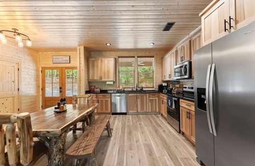 This brand-new 2024 cabin is nestled in the North Georgia mountains, just 15 min from Helen. Enjoy stunning lake views, direct water access, and everything you need for a relaxing getaway.
