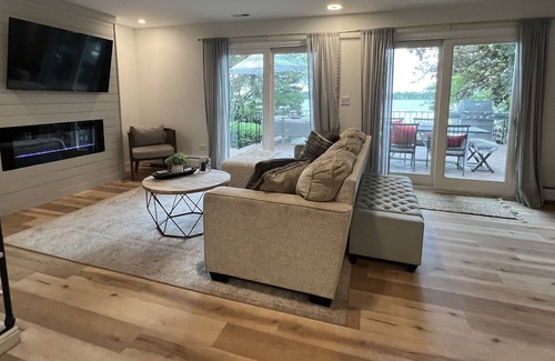 Outdoor: Upper deck includes couch, two loungers, dining table (seating for 8), fire pit table, and grill. Lower deck includes additional seating and walks out to the flat backyard. Enjoy outdoor fun with 2 adult kayaks, 2 kid kayaks (including life vests), ladder golf, and spikeball. If you plan to bring a boat or are interested in renting one in the area, please reach out for launch/rental options