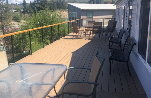 If you’re in the mood to watch a sunset, deck wraps around from the back of the house to the river-facing side. Relax and unwind from your day in the sun by watching it tuck itself away behind the mountains in a picturesque display of natural beauty.