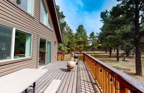 Plan your next vacation to this lovely, three-bedroom-plus-loft home in Pagosa Springs, where generous windows let in gorgeous sunshine and highlight all the comforts of home.