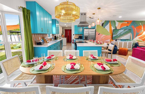 Be among the first to stay at Tampa Bae—a newly rebuilt 6BR, 3BA home designed for fun and connection. Inside, enjoy a game room, movie theater, and spacious sleeping for groups. Outside, relax in the hot tub, heated pool, dine, gather around the fire pit for 16, or play on the pickleball court, play set, or loungers. With 5 kings, 4 queens & a full, 10 beds, this is the ultimate Tampa retreat for memory-making.