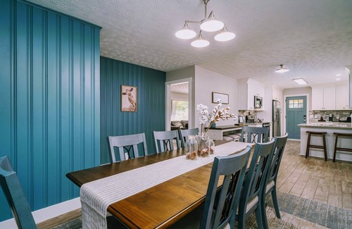 Welcome to Oakley Farms located in the northern part of Georgia! Stay at this 50-acre working farm with resort-worthy amenities and charming interiors. The home is located on the hill overlooking the pastures of the cows grazing. The property is the perfect size for a family retreat! Get ready for some rest and relaxation and enjoy the peaceful view with the cows grazing in the background. You will also hear the cows mooing from the house and you will never be disappointed!