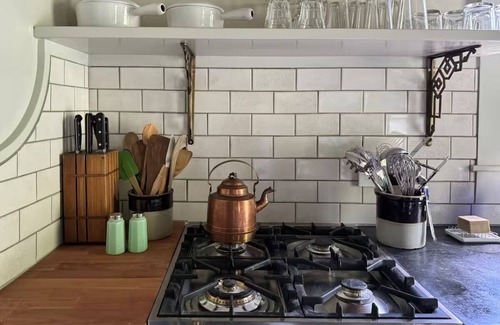 Filled with antiques, books, and art, the house has three bedrooms, living room, dining room, kitchen, pantry/laundry room, and a screened-in porch adjacent to an open-air deck. All mattresses, toiletries, bedding and linens are of excellent quality.