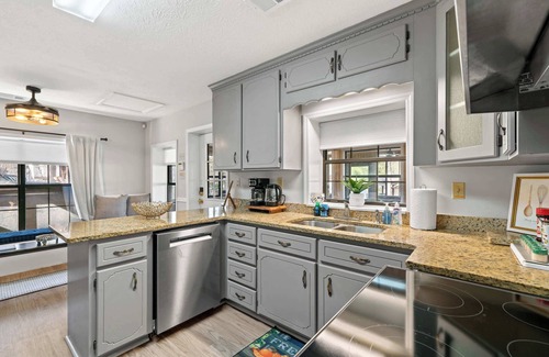 Spanning three stories, this spacious retreat features 4 bedrooms and 4 full bathrooms, providing ample accommodation for large groups or families. Three of the bedrooms boast king-size beds, while the fourth bedroom on the upper-level features built-in queen bunk beds, ensuring a comfortable stay for all guests.