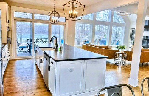 All new high end furnishings. Located on the private side of the lake, our new lake home feels like a private resort with your own beach, quiet cove where kids can play in a no wake zone. Enjoy kayaks, paddle boards and a fire pit!