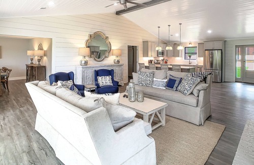 Come enjoy the best of Lake Tuscaloosa in this fully remodeled designer home. This 5 bedroom 5 bath is designed for group vacations. Large living areas for cooking, entertaining, and relaxing. Each bedroom has a private bathroom. 4 Bedrooms have king beds and the 5th is a bunk room with 4 twin beds and a full size futon.
