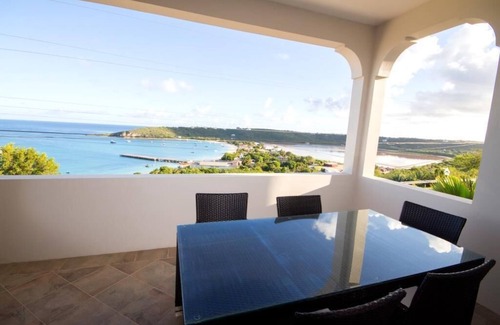 Exclusively situated for viewing this most iconic scenic spot in Anguilla, this modern penthouse atop a luxurious gated resort home offers the best in luxury, location and lifestyle. Awaken to a beautiful view of St. Martin or the Bay; enjoy a light breakfast made from your fridge stocked with our complimentary welcome package; take a dip in the plunge pool through your own private entrance. After a day at one of the many beaches just a few miles away, settle into one of your covered decks and sip on your favorite beverage while taking in our truly unequaled 360 degree views while the sunsets over the calm waters. Take an evening dip in the pool and grill up some fish and steak; or sit back and enjoy the twinkling lights of the boats on the bay and the stars in the sky over a glass of wine from your bedroom’s private deck.