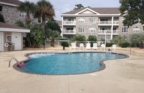 This is a wonderful first floor unit with 2 bedrooms and 2 full baths. 1000 square feet of space. Hardwood floor in living, dining and kitchen area. Tile in bathrooms and foyer. Carpet in bedrooms. Free WIFI, HD cable TV and phone line! Linens for all beds are included with bathing linens. You have 7 outdoor pools to choose from, all having restrooms located at each. It's only a 1 mile drive to the ocean, 1/2 mile drive to broadway at the beach. You are at the center of it all! You are also within a mile or so of the Cal Ripken's baseball experience! 2 awesome golf courses located on the property. You can't go wrong staying here!