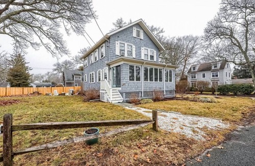 Nestled in the heart of historic New Silver Beach this charming four bedroom colonial is ready to host your classic Cape Cod vacation! The 1st floor features the kitchen, dining room, living room and enclosed front porch. The 2nd floor has four bedrooms and another full bathroom. There is large yard, outdoor shower, patio for outdoor dining and fabulous firepit! Just a short stroll to the beach, the local store, kayaking, tennis, playground and more!