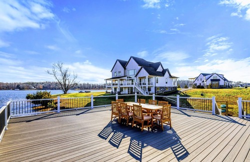 Experience comfort and luxury at our brand new modern and spacious lakefront home on the Private Side of Lake Anna. Enjoy the panoramic blue water lake views from the large dock, atop of our deck, or from the comfort of inside the home through many of the large windows. You will love the entire property including ~500 hundred feet of waterfront shoreline with a gently sloped naturally sandy bottom, warm freshwater, and a private beach. We provide lots of water toys including kayaks and a paddle boat. Roast some delicious s'mores using our outdoor fire pit, or have a BBQ using our outdoor gas grill. Inside, this expansive home has plenty of space for everyone with 6 bedrooms and 5.5 bathrooms, an open floor plan and multiple living areas. Relax in the spacious main great room with water views through the huge bright windows, large French doors, a gas fireplace, and 4K Smart TV. Hang out in the huge lower level game room and have fun playing family appropriate games, ping-pong, pool, shuffleboard, or foosball. Watch a movie in our cozy movie theater. This is one of the few homes at Lake Anna with High Speed Internet, so you could work remotely if necessary. Alternatively, you could use the High Speed Internet and Free Wi-Fi network throughout the home to enjoy your time off and stream your favorite shows while you FaceTime everyone!