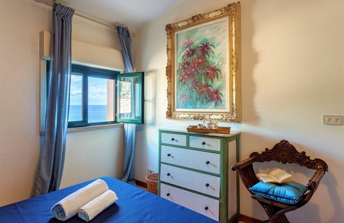 The second double bedroom has a charming décor, fine-quality linens and paintings, enhanced by a stunning sea-view. There is a comfortable bathroom to serve both bedrooms, complete with hair dryer, shower and bidet.