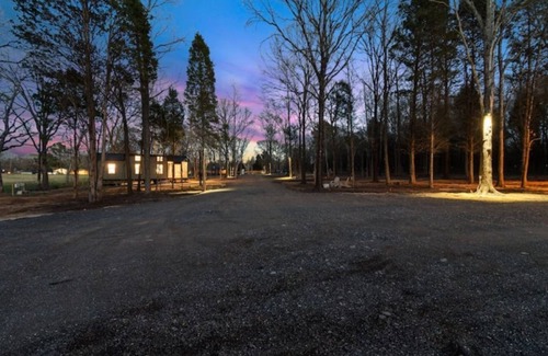 Modern tiny home located in a gated tiny home/rv community with a dog park & street lights. State of the art kitchen snd roomy living for relaxing and cooking. Queen bed in private bedroom & queen bed located in upstairs loft. Private front patio for relaxing and enjoying the peace and quiet. Enjoy your stay surrounded by nature and wildlife but still close to town and minutes to Lake Athens. Great setting & still 3.5 miles from Athens town square. Enjoy the community firepit just steps away.