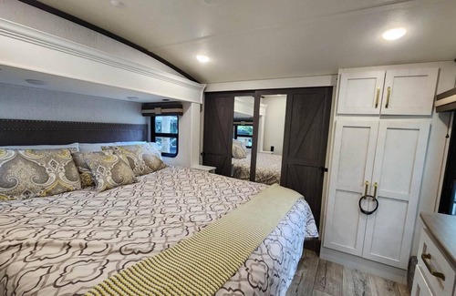 This privately owned Luxury RV Lot is set up with a TURN-KEY fully stocked RV that sleeps 6. The living area and kitchen are spacious and beautiful! The master bedroom has a king bed and TV. The 2nd Bedroom has a full bed PLUS a loft with an entertainment center, perfect for kids! The main bathroom has a double sink vanity and step in shower with bench. This This RV package is perfect for families and couples traveling together!