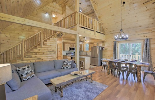 From roasting marshmallows around the fire pit to making memories on the water, this Arkdale vacation rental has everything you need for an epic family trip! The 3-bedroom, 2-bathroom cabin, surrounded by peaceful woods and fresh air, comes complete with a spacious deck, a gas grill, Smart TVs, and a fully equipped kitchen for your convenience. Rent a pontoon boat nearby and cruise around Castle Rock Lake or check out the community tiki bar for a refreshment. This pet-friendly gem has it all!