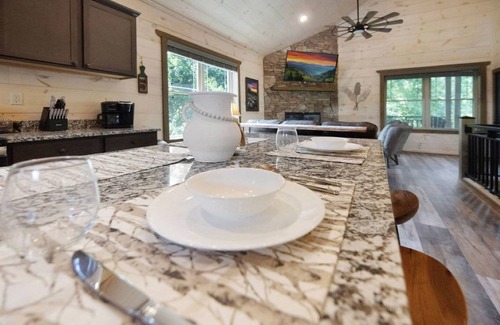 Welcome to your perfect escape in Sevierville, minutes from Winfield Dunn Pkwy. This newly built cabin blends modern luxury with rustic charm. Enjoy stainless steel kitchen appliance, granite countertops, and vaulted ceilings. Relax by the fireplace in the spacious living area or on the upper and lower decks with cozy seating and a hot tub. A short drive from Sevierville and Pigeon Forge attractions, this cabin is your ideal Smokies retreat.