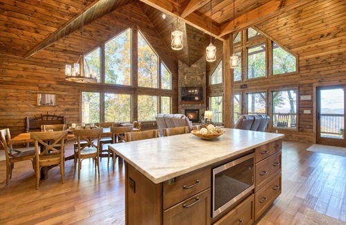 Almost Heaven is a newly built luxury log home with amazing floor to ceiling windows, which allows you to see the stunning long range mountain views and Lake Junaluska. It is also brand new to the rental program at Smoky Mountain Retreat. This will be your home away from home, where you can feel free to leave all of your worries behind and enjoy the peace and relaxation of the mountains! Our guests will enjoy rocking on the large, covered porch with your morning coffee or evening glass of wine, as you experience the breathtaking views and fresh mountain air!
