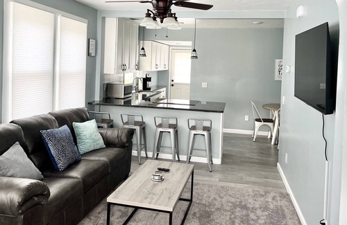 Spend time at the newly remodeled lakeside cottage on the Willoughby and Mentor-on-the-Lake border. Nice quiet neighborhood but also close to everything! This cottage features a desirable open floor plan, 3 bedrooms, fully stocked kitchen, high speed internet, cable, smart TV's, brand new furniture and mattresses, washer, dryer, and more! Blankets, linens, towels, and toiletries are provided. Enjoy views of Lake Erie’s breath taking sunsets at Sunset Park!