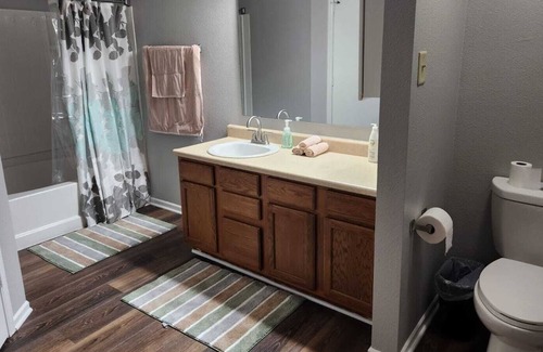 GENERAL: Free WiFi (AT&T Fiber), towels/linens, central A/C & heating, in-unit washer/dryer, hair dryer, hangers, iron/board, trash bags/paper towels, complimentary toiletries and bottled water.