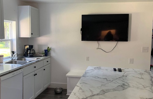 Experience Elkhart Lake like a local in this 4-bedroom house. With 3 queen beds, 3 twin beds, and 1 king bed, this lovely property is perfect for families or groups of friends. Enjoy the superb amenities such as heating, hair dryer, WiFi, AC, and a washing machine. The 2 bathrooms feature showers and hair dryers for your convenience. Book now and enjoy everything this house has to offer.