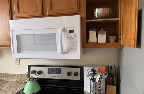 Fully-equipped kitchen with icemaker, dishwasher, microwave and coffee maker. Cookware, tools & utensils supplied.