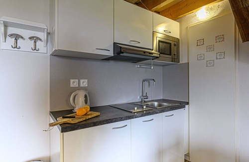 "Château De Kergonano", 2-room penthouse 29 m2 on 3rd floor. Beautiful furnishings: living/sleeping room with 1 double sofabed (2 x 80 cm, length 190 cm), TV (flat screen). Exit to the terrace. 1 room with 1 french bed (1 x 140 cm, length 190 cm), shower/WC. Kitchenette (dishwasher, 4 ceramic glass hob hotplates, kettle, microwave, electric coffee machine). Electric heating. View of the swimming pool and the garden. Facilities: Internet (WiFi, extra). Reserved parking. Please note: non-smokers only. 1 small pet/ dog allowed. Smoke alarm. Daily cleaning and change of linen possible on request and at extra cost. Offer by a private individual according to Art. 155, IV of CGI.