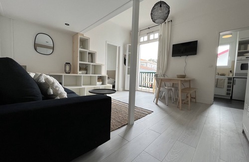 Nice cozy and bright 2/4 person apartment with fully renovated balcony! is located in Biarritz. Nice cozy and bright 2/4 person apartment with fully renovated balcony! provides accommodation, featuring Kitchen, TV, Bedding/Linens, among other amenities. This Apartment features Kitchen, TV, Bedding/Linens, to make your stay a comfortable one.