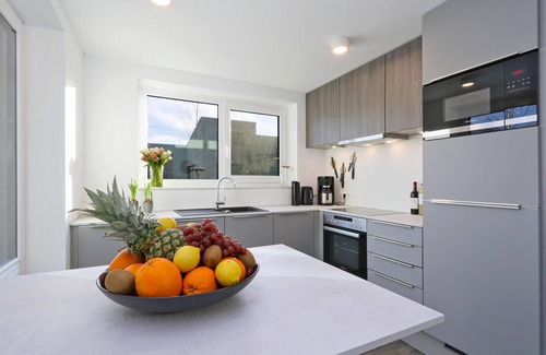 Welcome to your holiday home, which offers you as a family with children or as a small group of friends a cosy, homely ambience with Scandinavian design furnishings. Two terraces for sitting and eating in the sun, the bio-fireplace and your own sauna leave nothing to be desired. The open-plan kitchen invites you to cook and linger. There is an open-plan bedroom on the gallery.